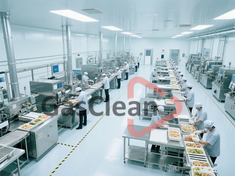 Cleanroom dalam industri makanan merupakan ruang produksi yang dirancang khusus untuk meminimalkan kontaminasi dari debu, bakteri, maupun partikel asing lainnya. Sistem ini dilengkapi dengan filtrasi udara seperti HEPA atau ULPA, kontrol suhu dan kelembapan, serta prosedur kerja yang ketat.